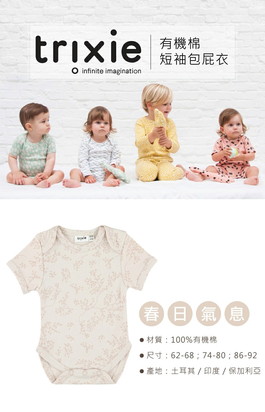 比利時Trixie 有機棉短袖包屁衣-春日氣息(多尺寸可選)