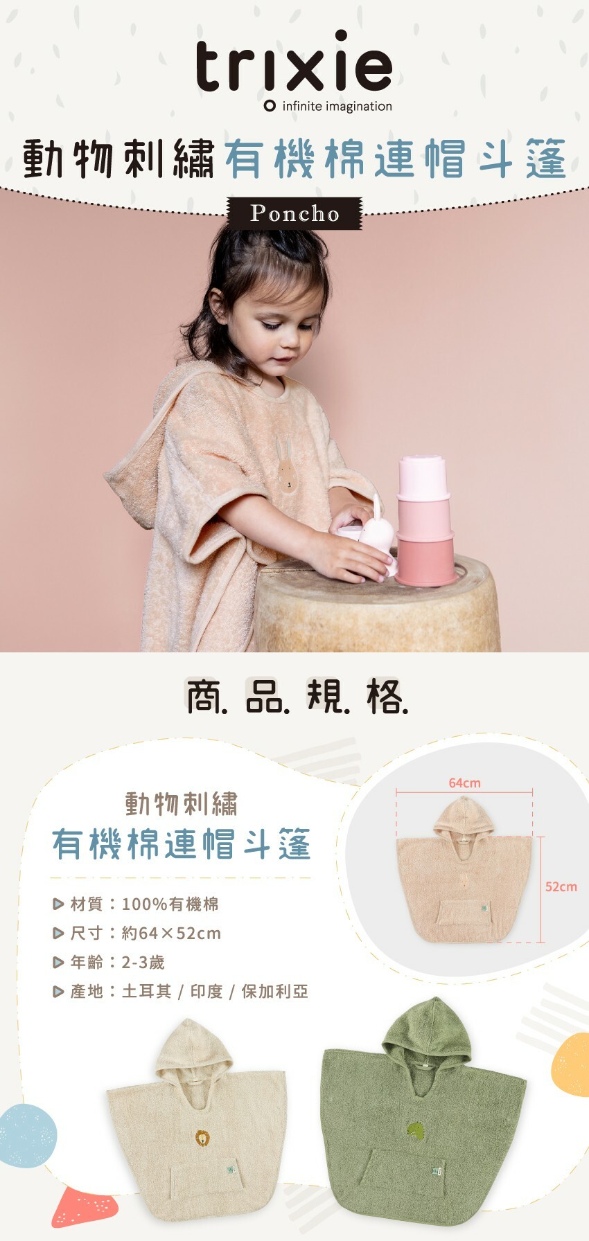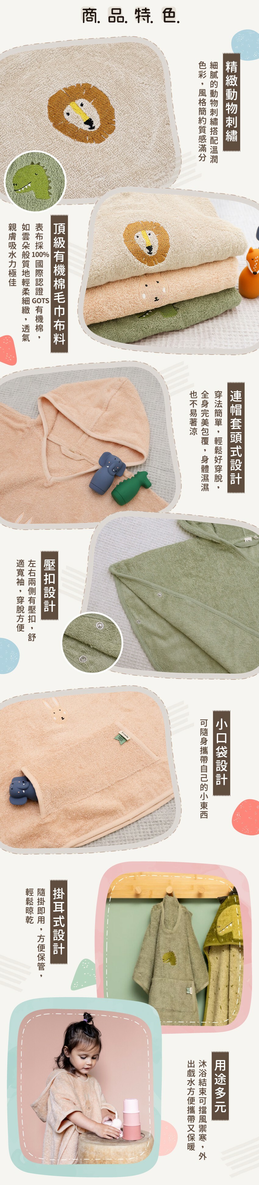 ● 連帽套頭式設計,不易著涼、輕鬆好穿脫