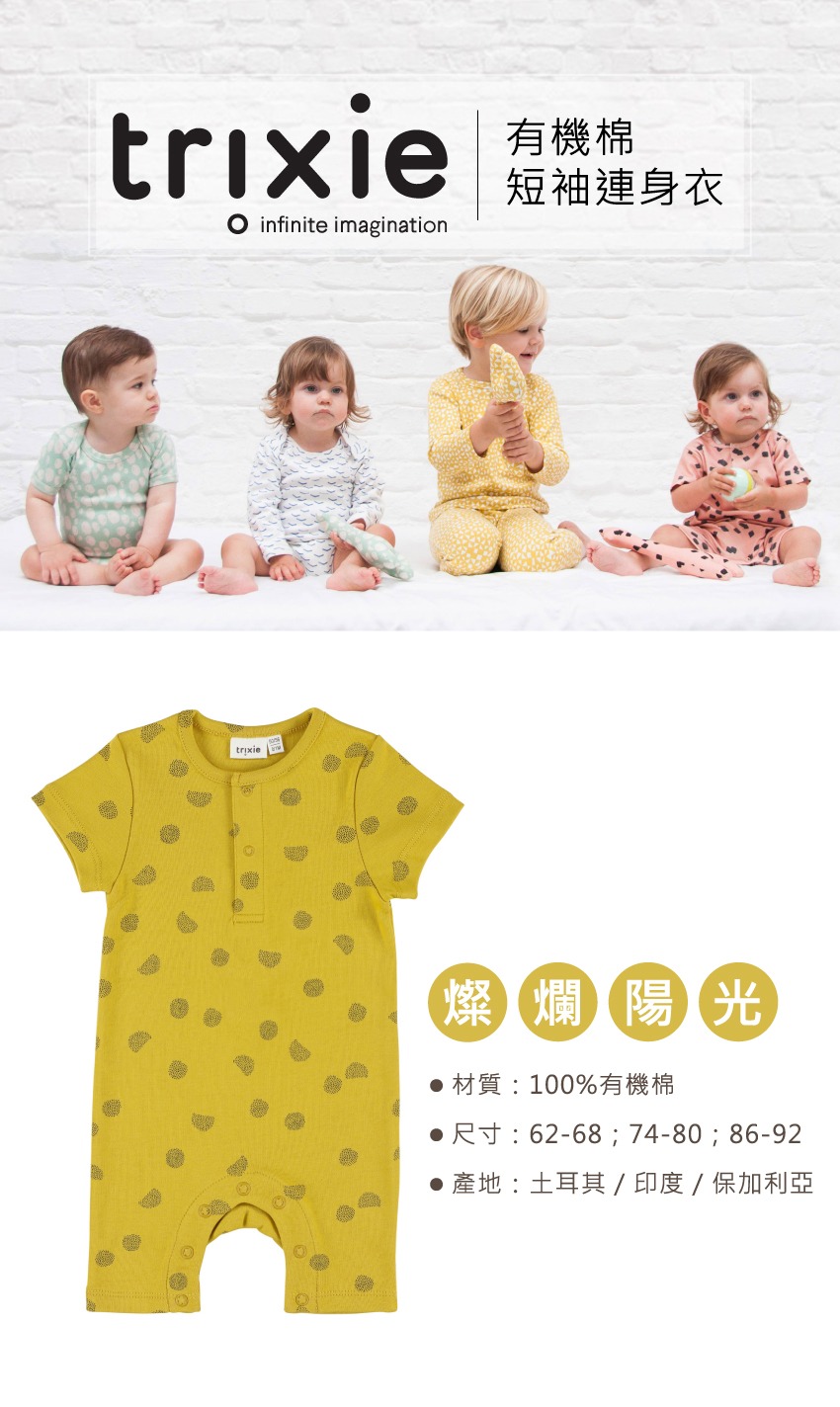 比利時Trixie 有機棉短袖連身衣-燦爛陽光(62-68cm)