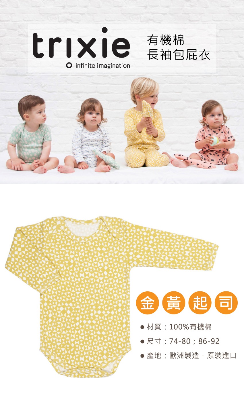 比利時Trixie 有機棉長袖包屁衣-金黃起司(多尺寸可選)