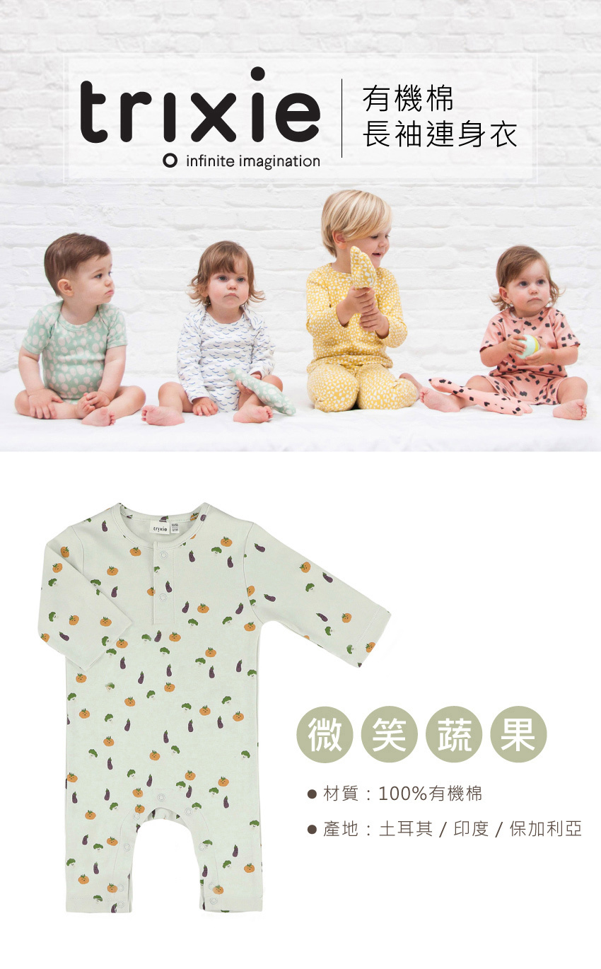 比利時Trixie 有機棉長袖連身衣-微笑蔬果(多尺寸可選)