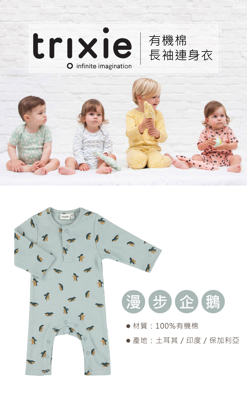 比利時Trixie 有機棉長袖連身衣-漫步企鵝(多尺寸可選)