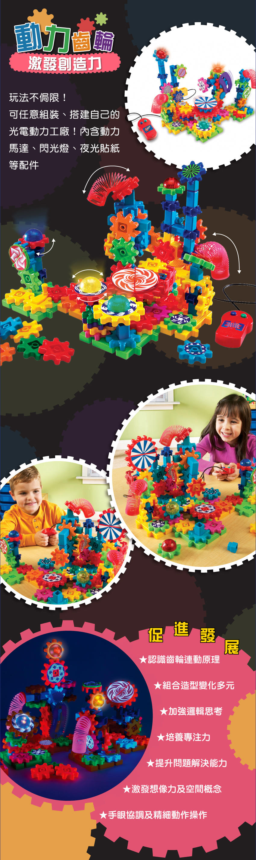 ● 認識齒輪連動原理,組合造型變化多元
