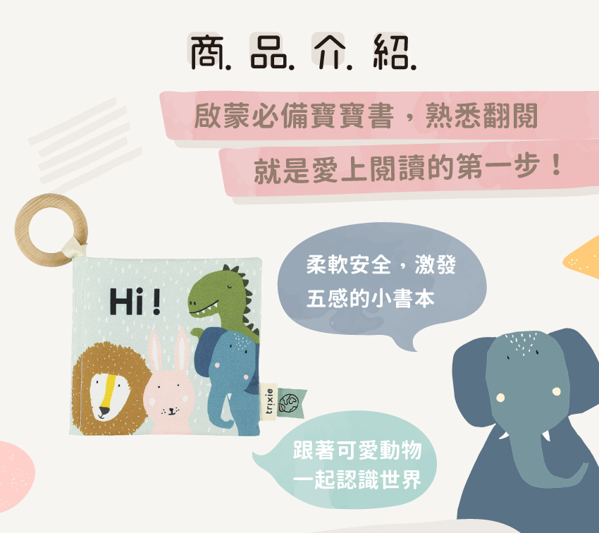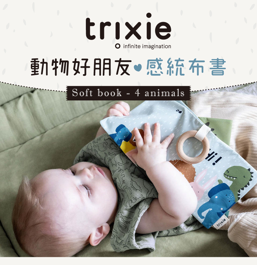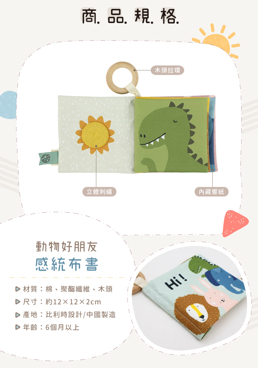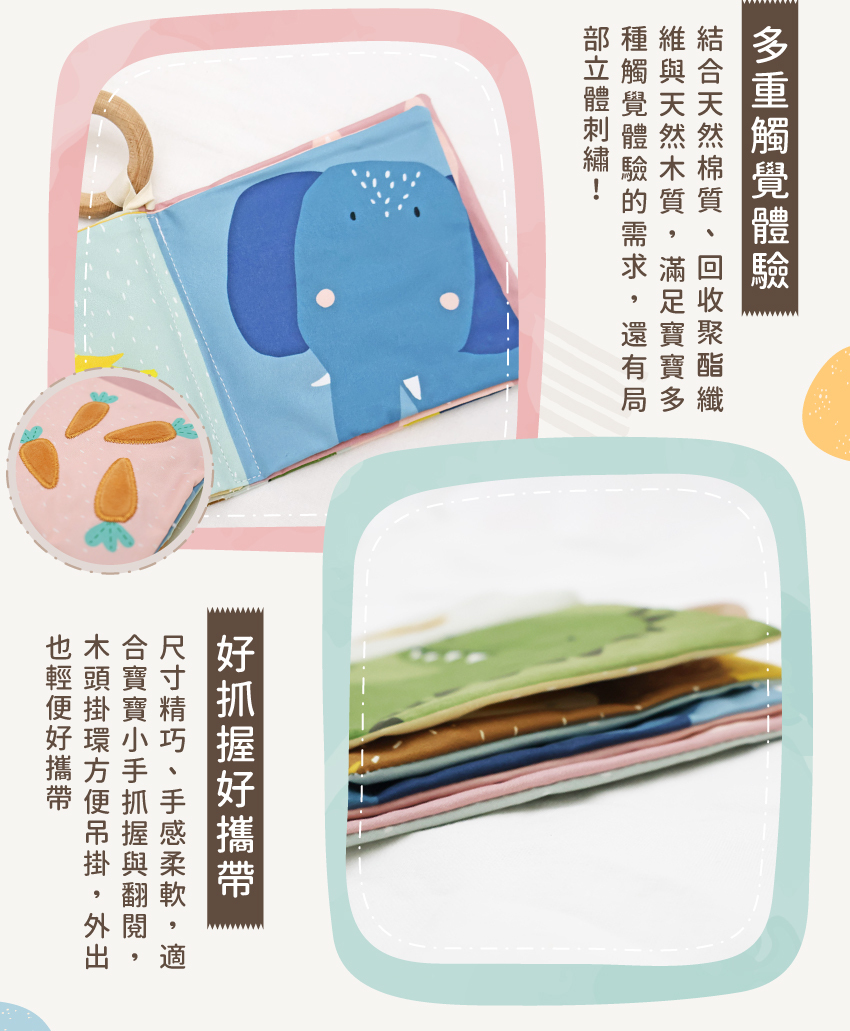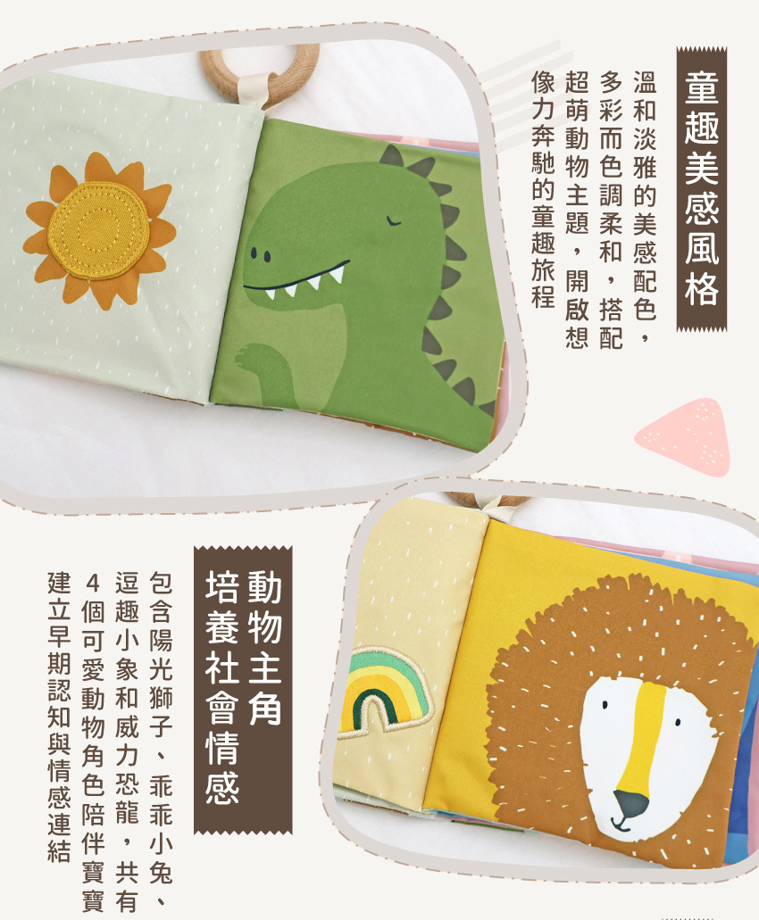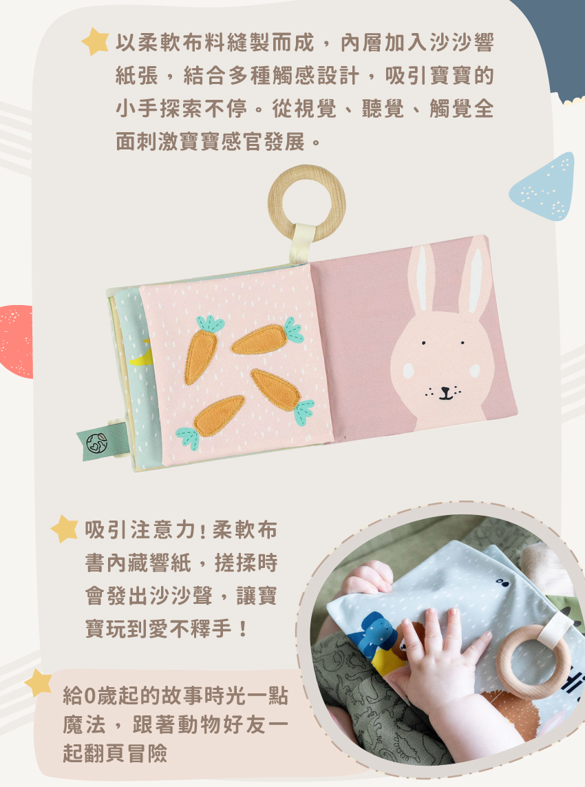 ● 柔軟布書內藏響紙,會發出沙沙聲唷