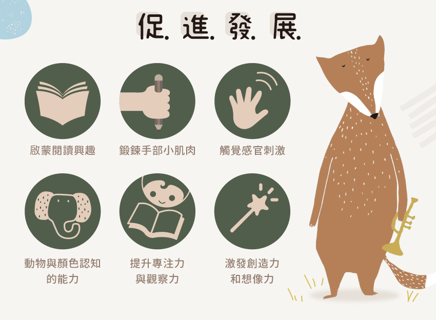 ● 可學習數數、基本顏色、動物認知