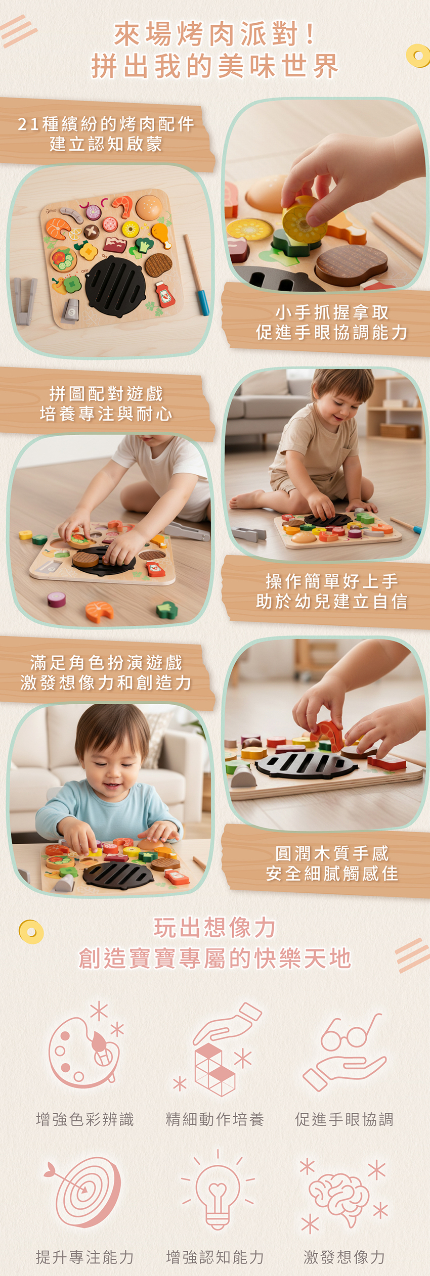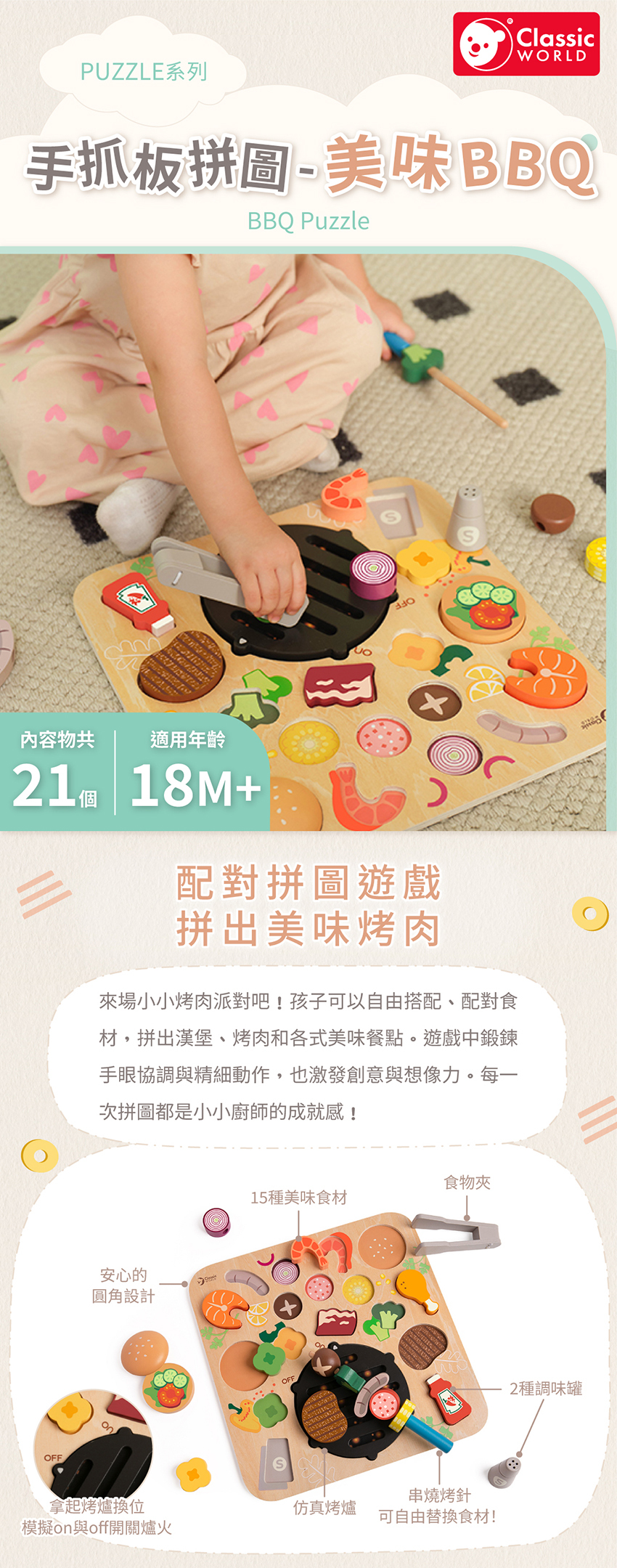 ● 仿真 BBQ 配對拼圖遊玩組,啟蒙 18 個月以上寶寶
