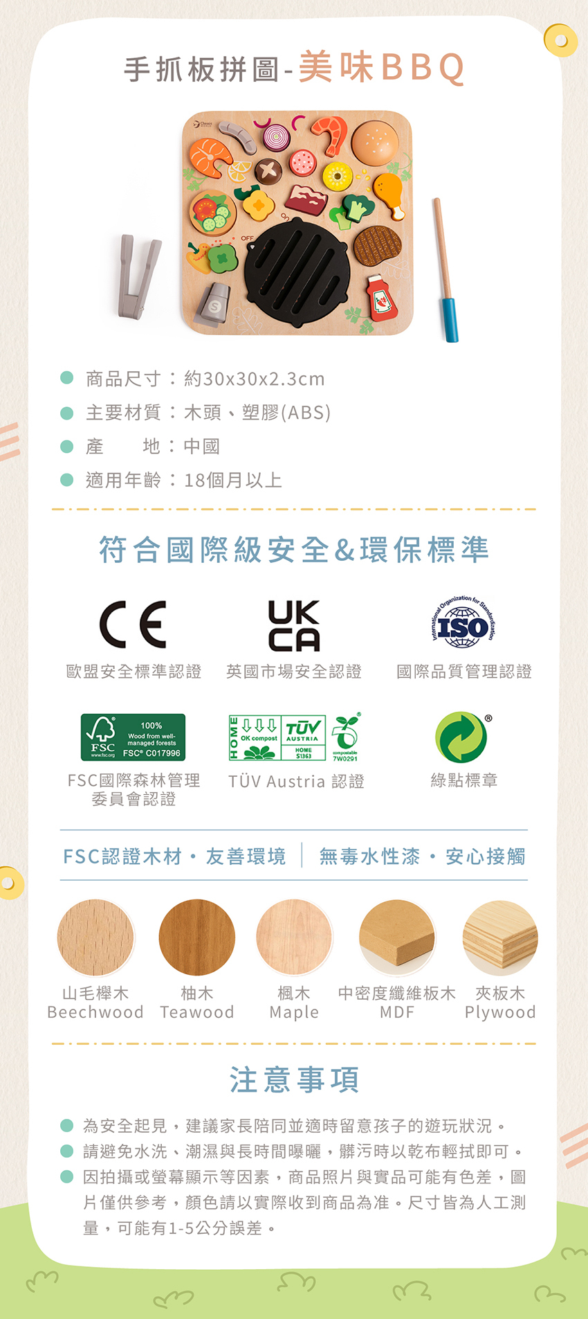 ● 使用 FSC 認證木材,符合 CE 與多項國際安全標準