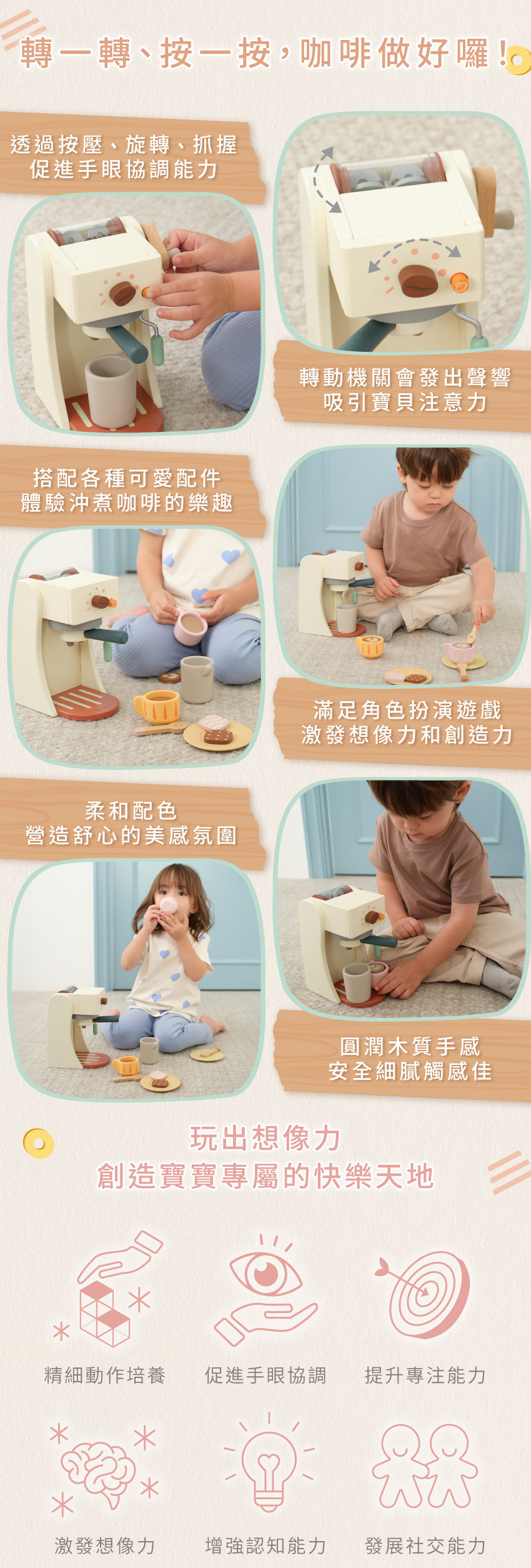 ● 透過按壓、旋轉、抓握,促進手眼協調能力