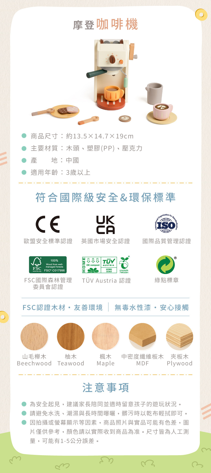● 圓潤木質手感,安全細膩觸感佳