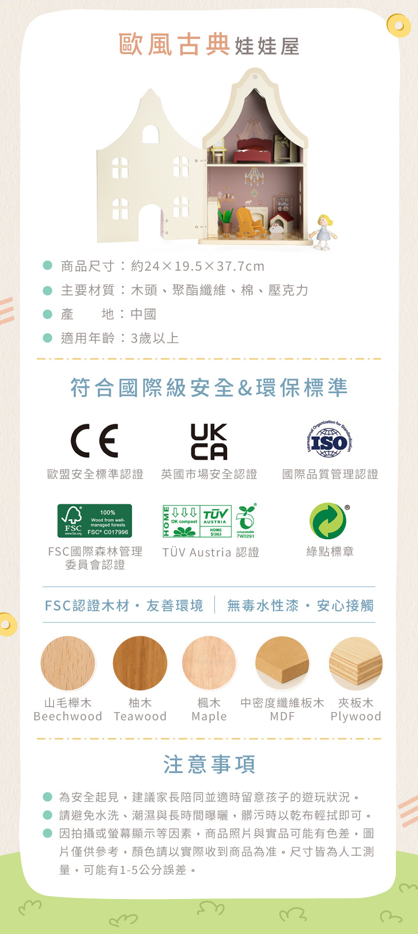 ● 圓潤木質手感,安全細膩觸感佳