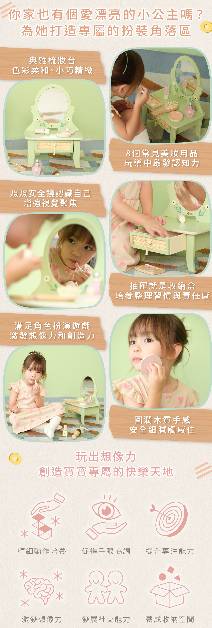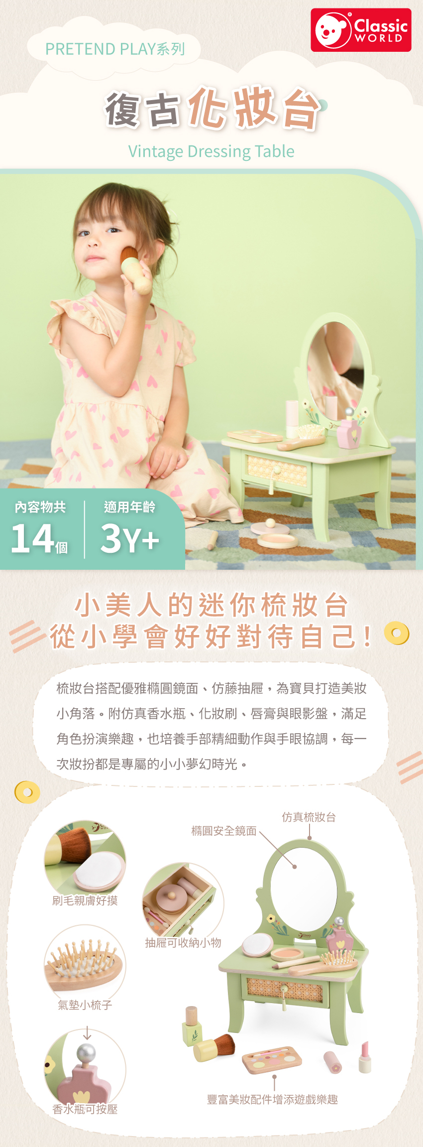● 典雅梳妝台,色彩柔和、小巧精緻