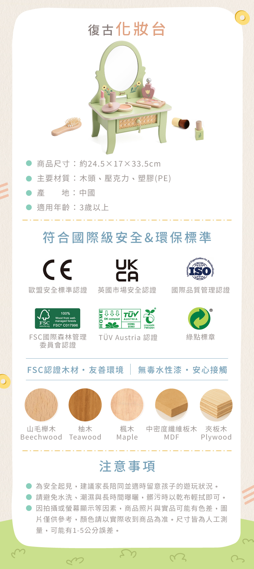 ● 圓潤木質手感,安全細膩觸感佳