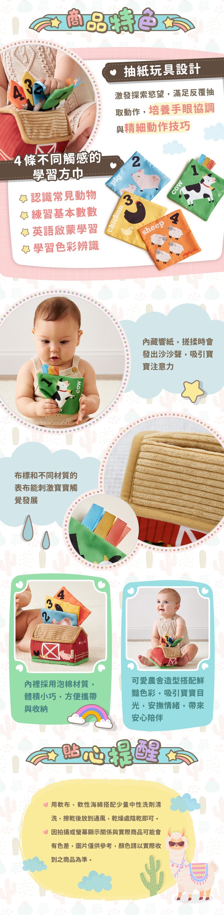 ● 鮮豔色彩搭配可愛造型,吸引寶寶目光並安撫情緒