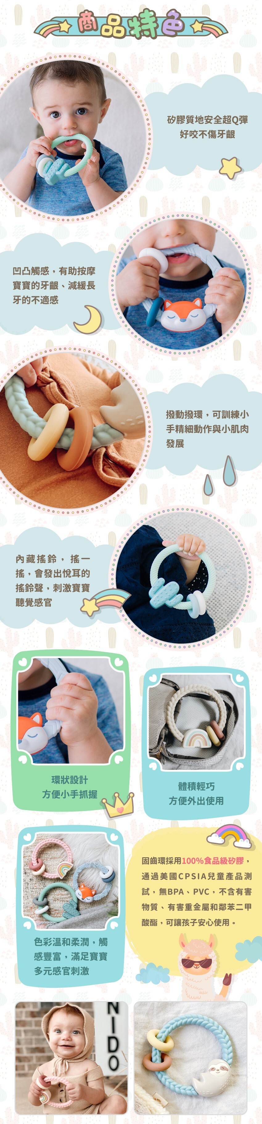 ● 矽膠質地安全超Q彈,好咬不傷牙齦