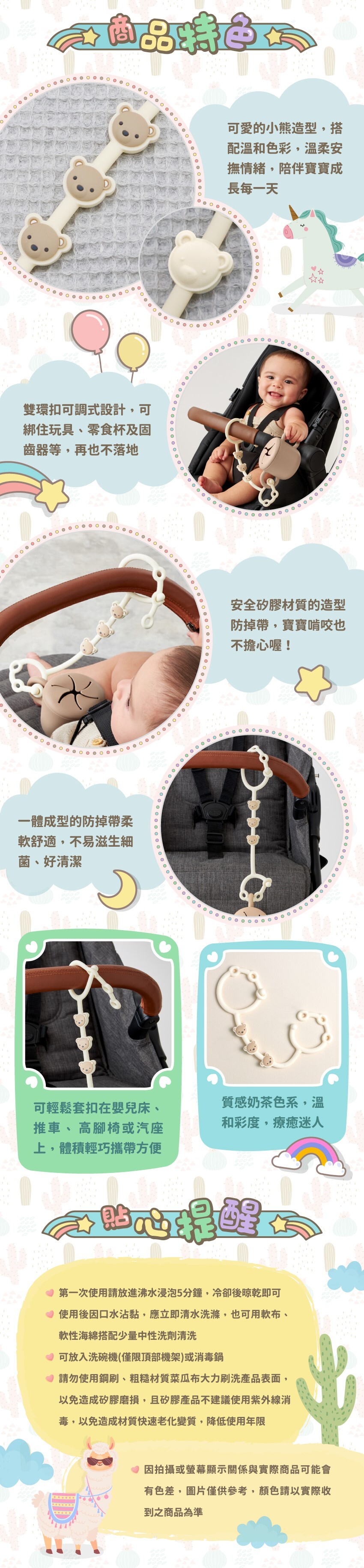 ● 可綁玩具奶嘴固齒器等不遺失
