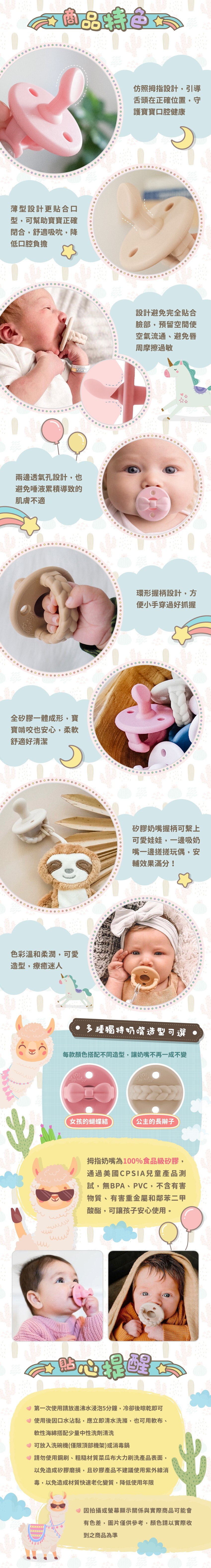 ● 拇指造型設計,引導正確含吮姿勢,促進口腔健康