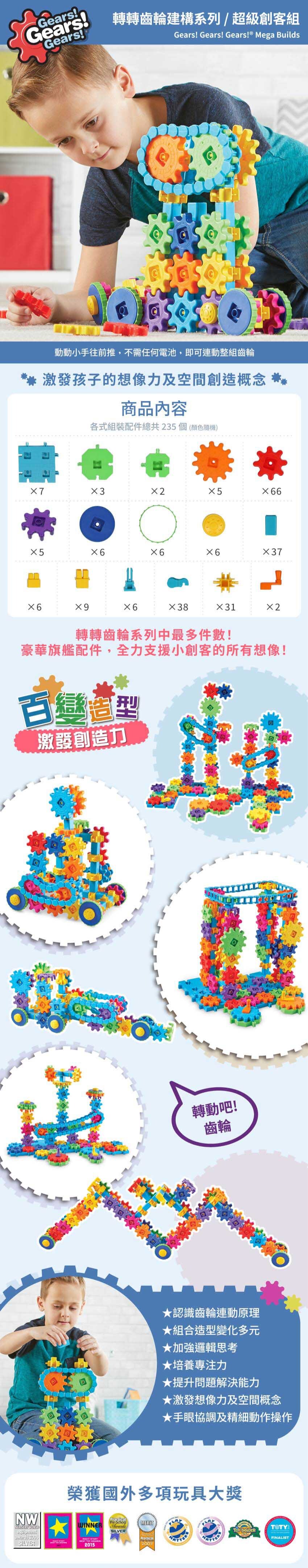 ● 無需電池,推動即可連動整組齒輪,激發機械結構興趣