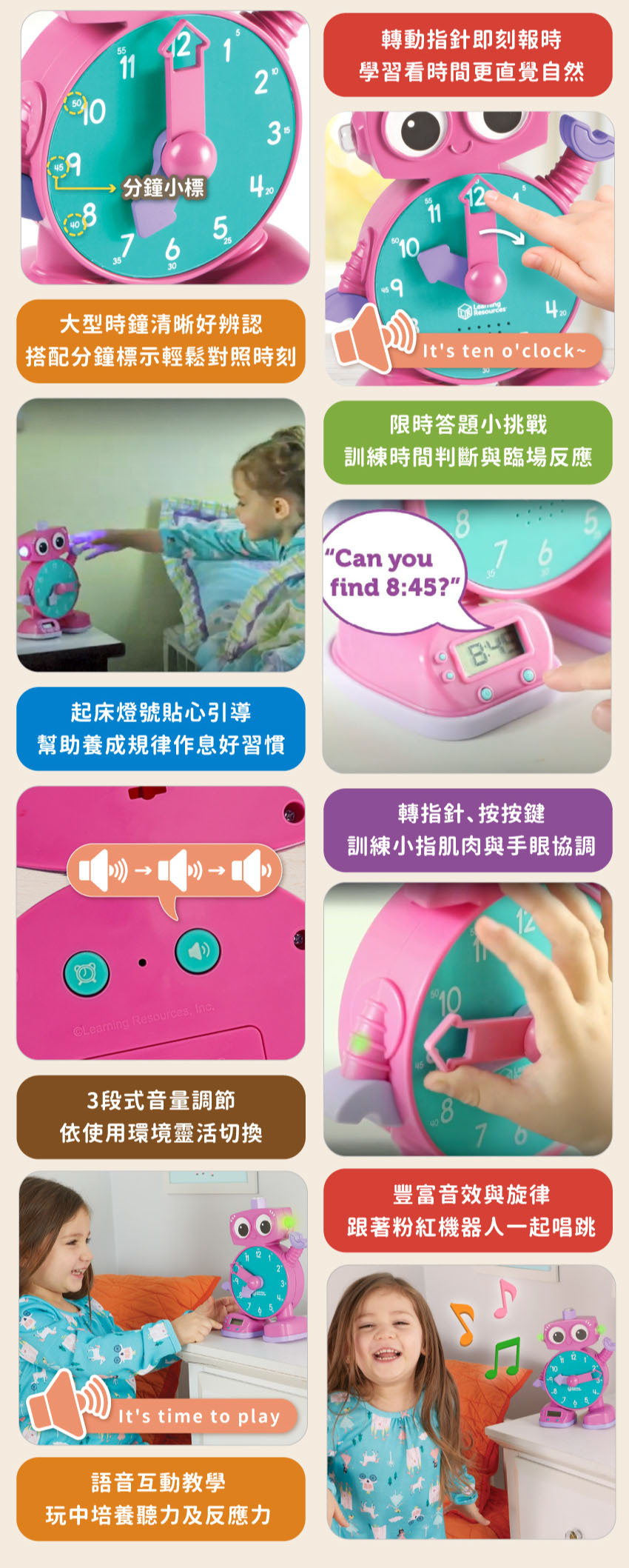 ● 內建音樂與燈號,陪伴玩樂與培養規律作息