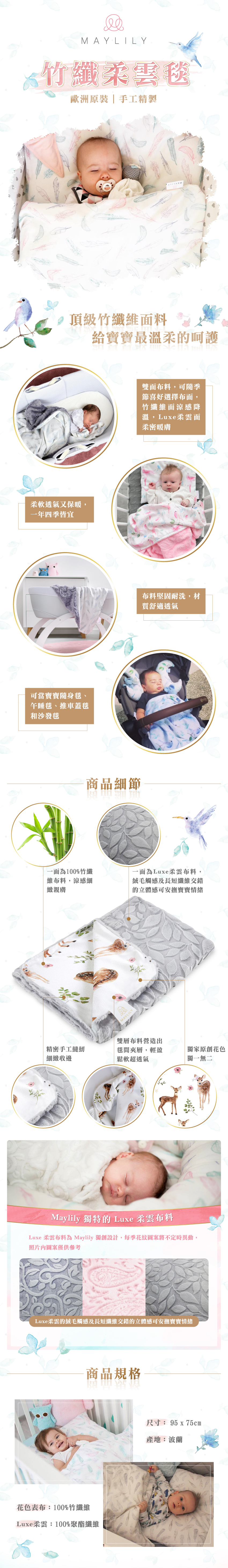● 一面為柔雲布料,絨毛觸感可安撫寶寶情緒