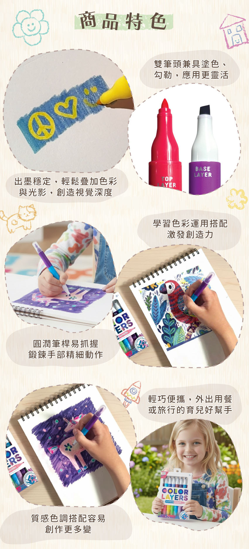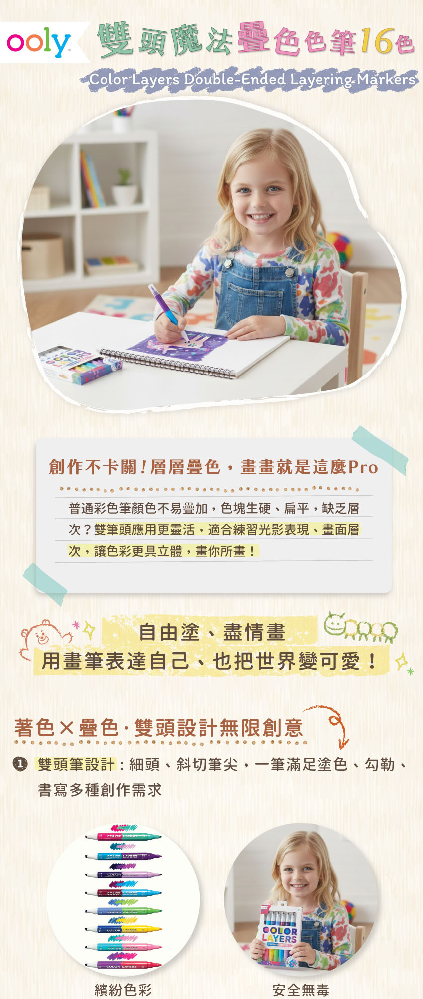 ● 16色雙頭細尖設計,適合疊色與細節勾勒