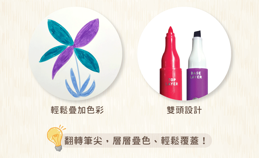 ● 斜切筆尖,可畫出粗細線條與塗色需求