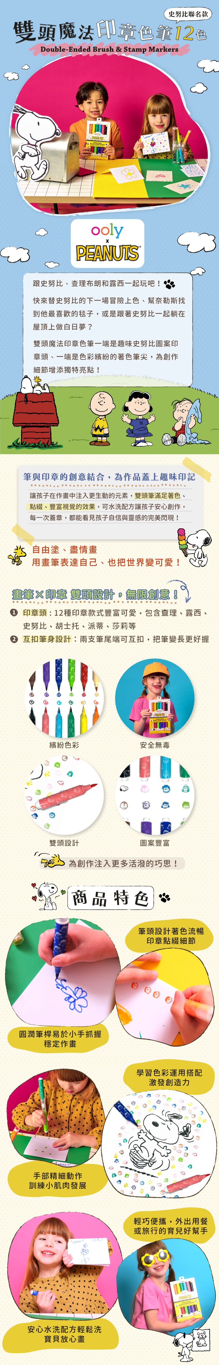 ● 史努比聯名款雙頭設計,一端著色、一端造型印章