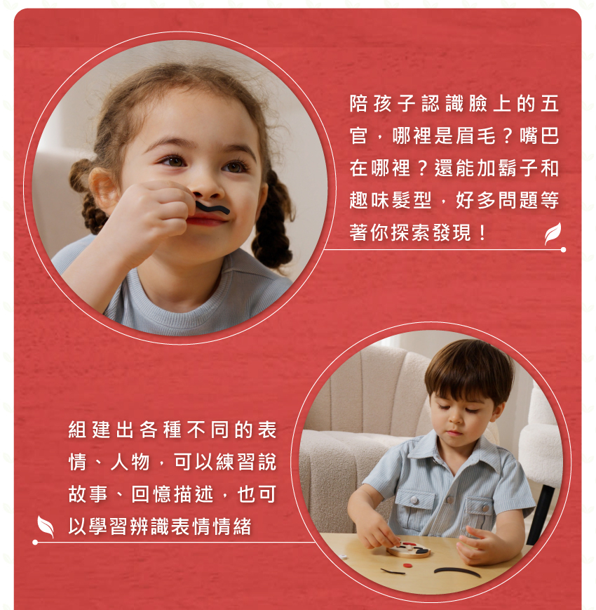 ● 陪孩子認識臉上五官,還有鬍子和髮型可選
