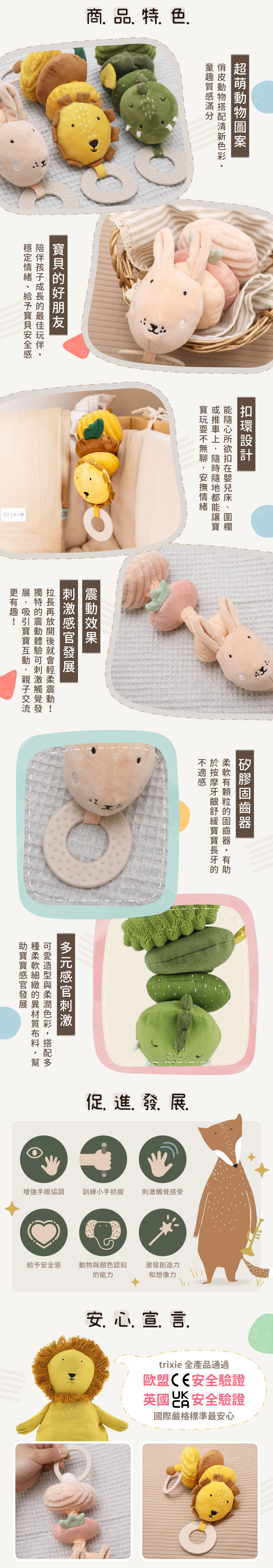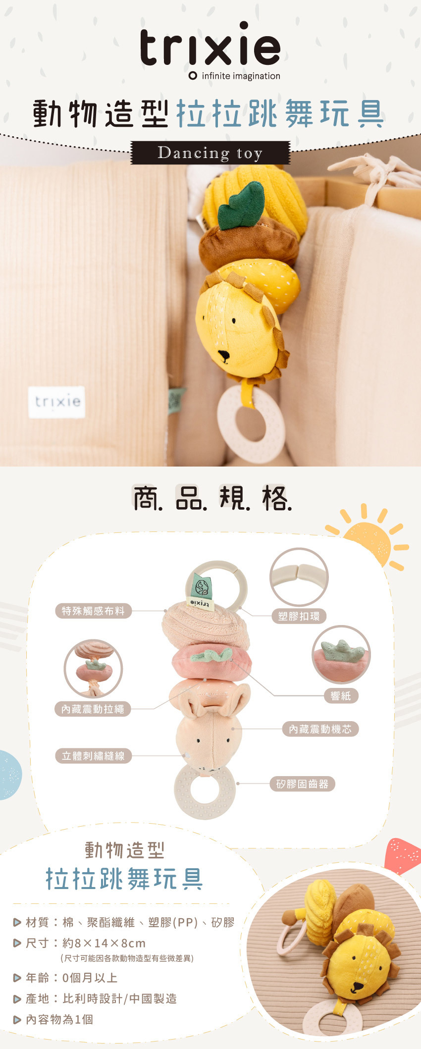 ● 拉動後會輕柔震動,可刺激寶寶感官發展