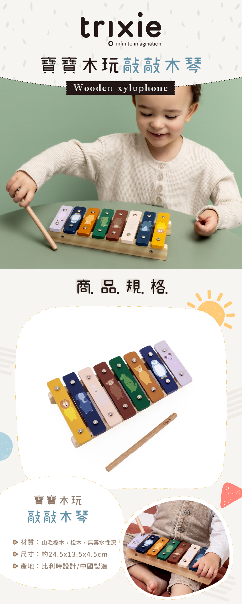 ● 木槌可收納於木琴側邊,不易弄丟
