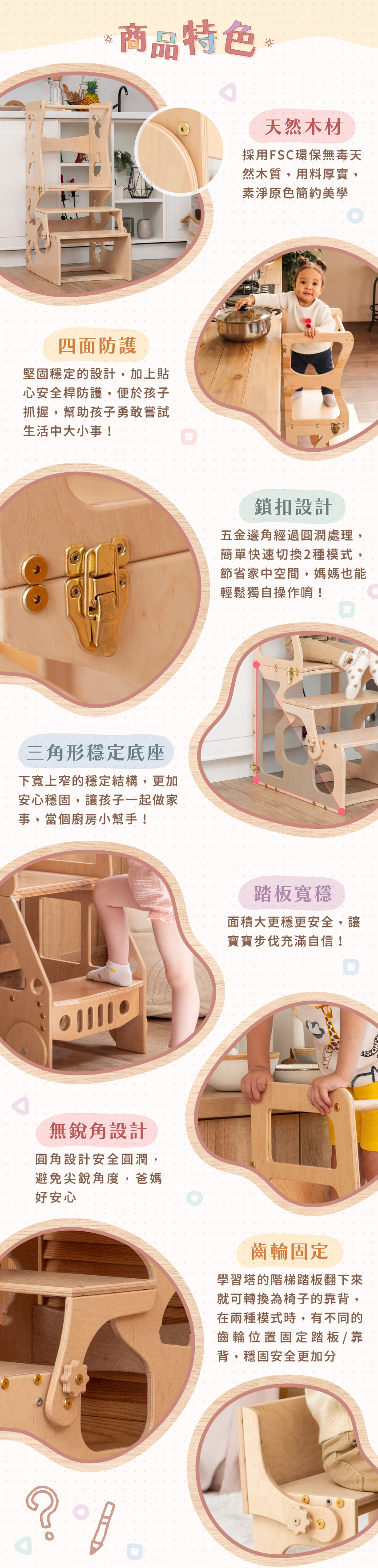 ● 鎖扣設計,讓學習塔鎖牢堅固更放心
