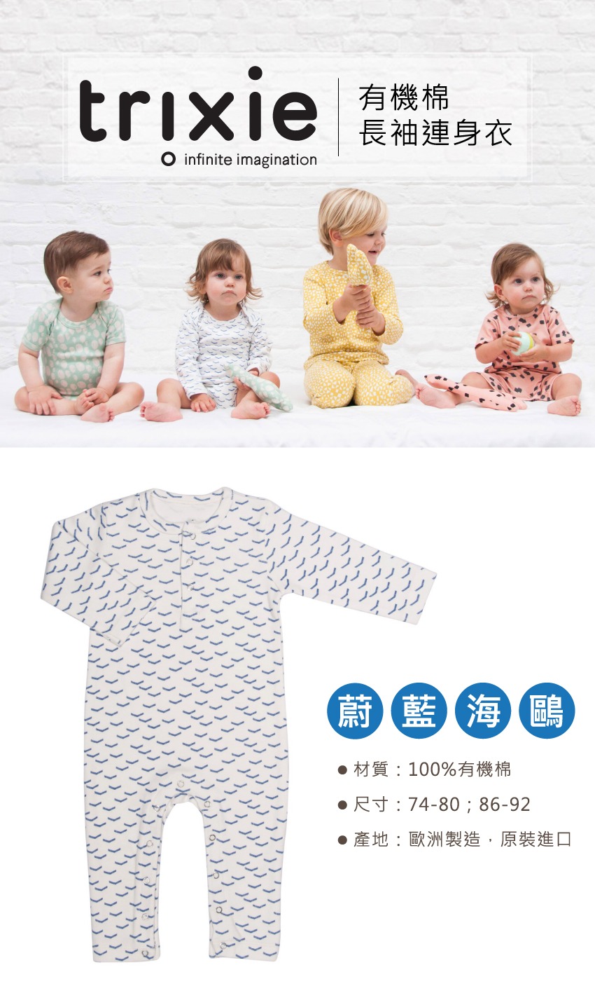 比利時Trixie 有機棉長袖連身衣-蔚藍海鷗(多尺寸可選)