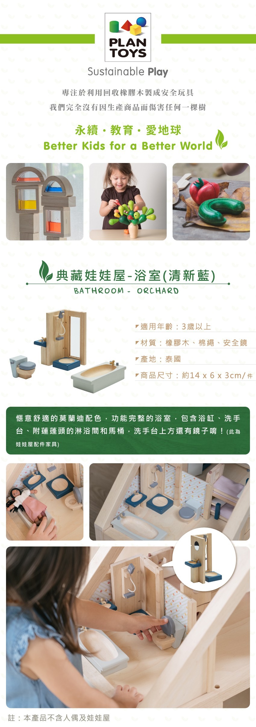 泰國Plantoys 典藏娃娃屋-浴室(清新藍)