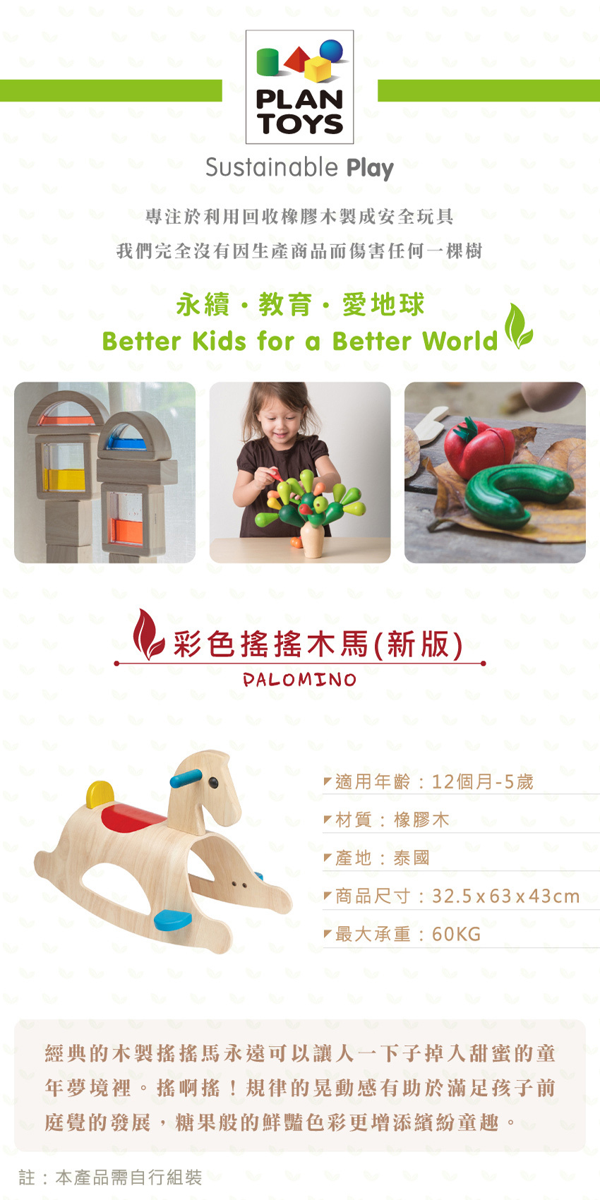 泰國Plantoys 彩色搖搖木馬(新版)