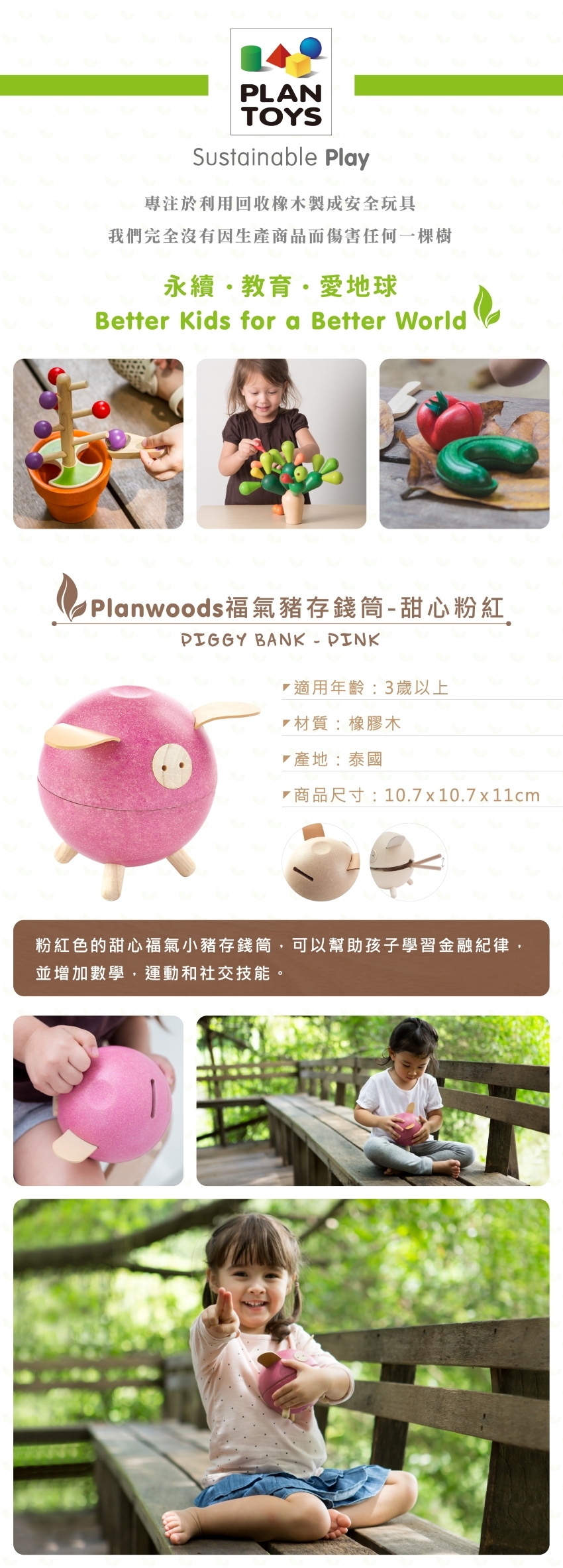 *微瑕品*Plantoys 福氣豬存錢筒-甜心粉紅