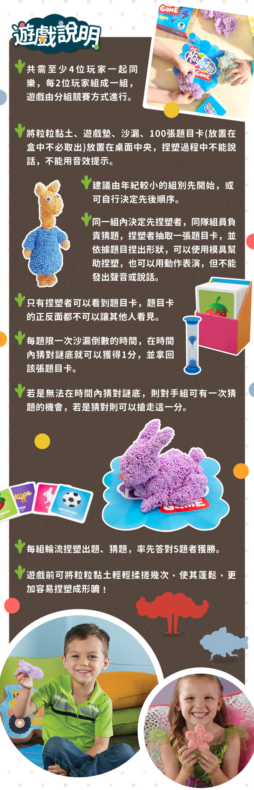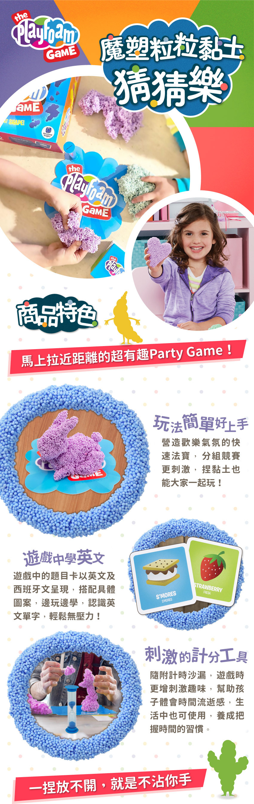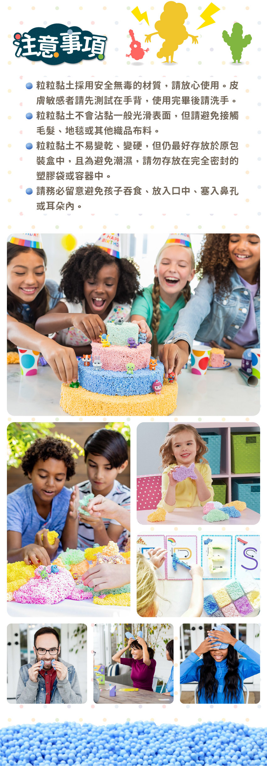 ● 可重複使用─粒粒黏土不易乾硬,不黏手、好收拾