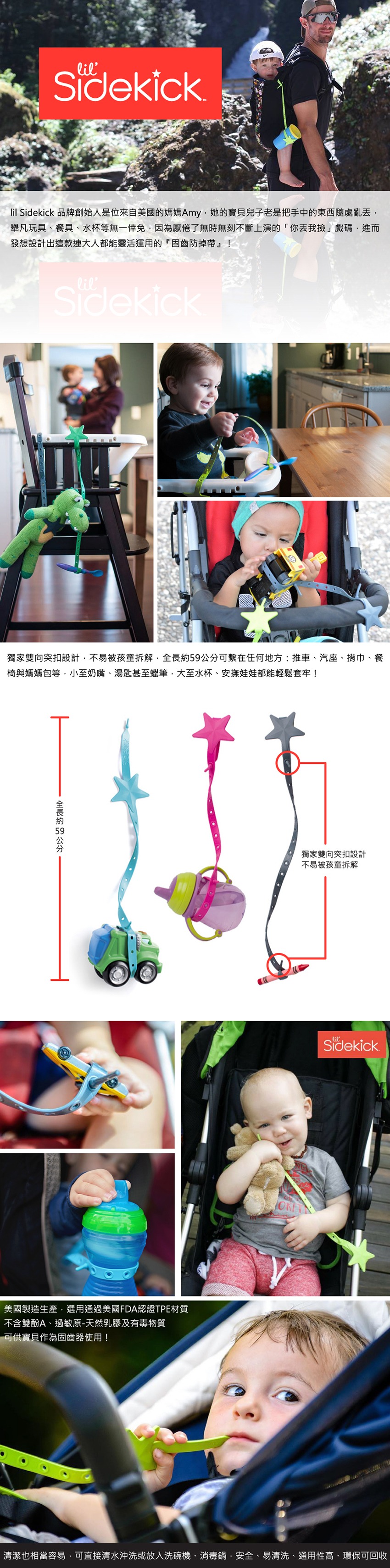 ●可雙向綁住寶寶用品和玩具,再也不落地