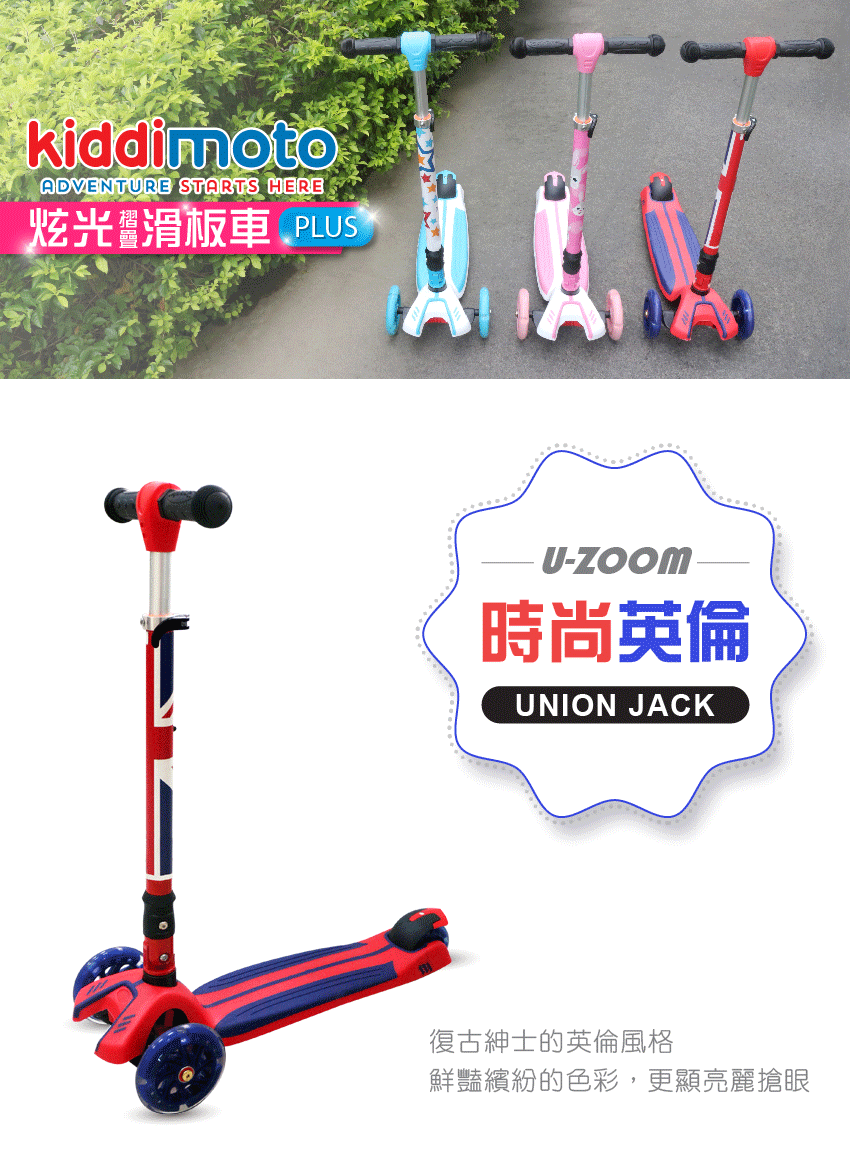 *微瑕品*kiddimoto 炫光摺疊滑板車Plus-時尚英倫
