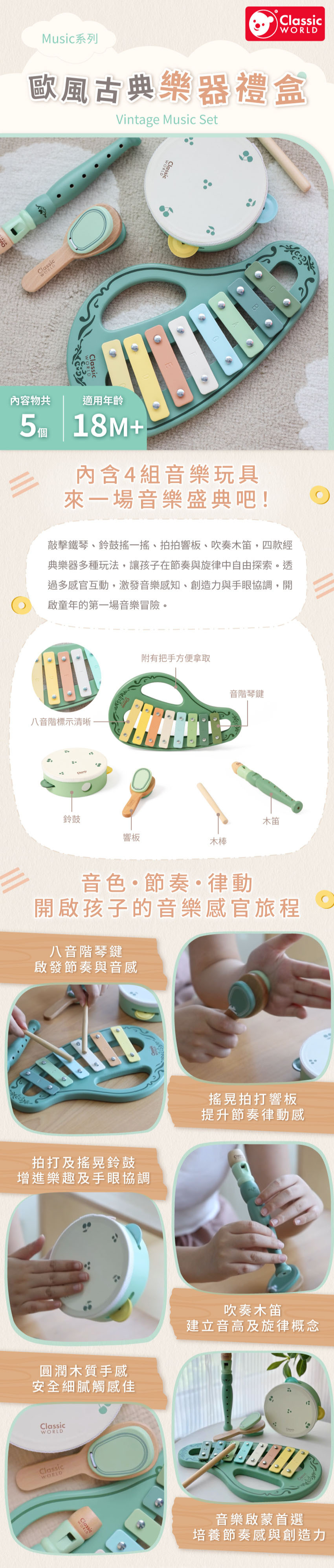 ● 鐵琴、鈴鼓、響板、木笛,4種樂器自由探索
