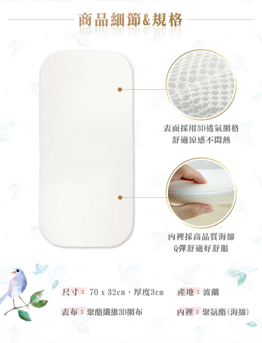 ● 3cm高密度Q彈內芯,給寶寶完美支撐