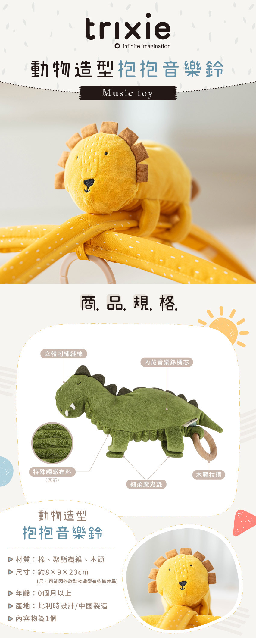 ● 細緻布料觸感與可愛造型,滿足多元感統刺激