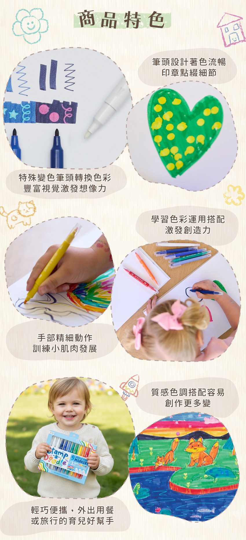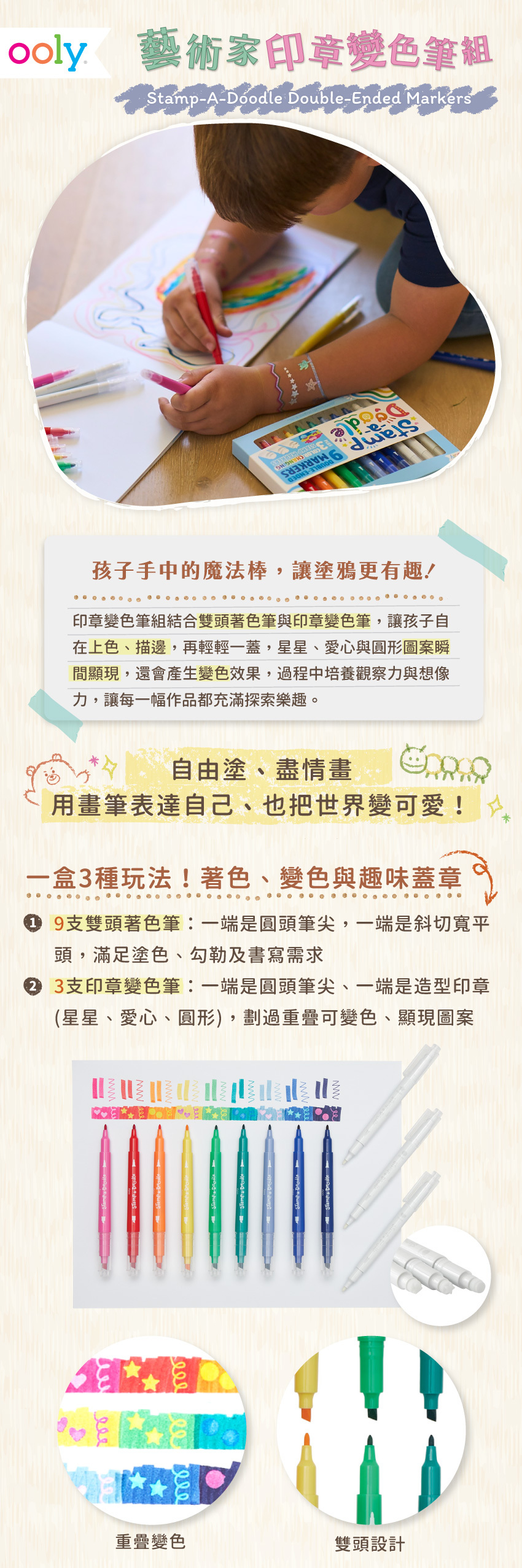 ● 特殊變色筆頭轉換色彩,豐富視覺激發想像力