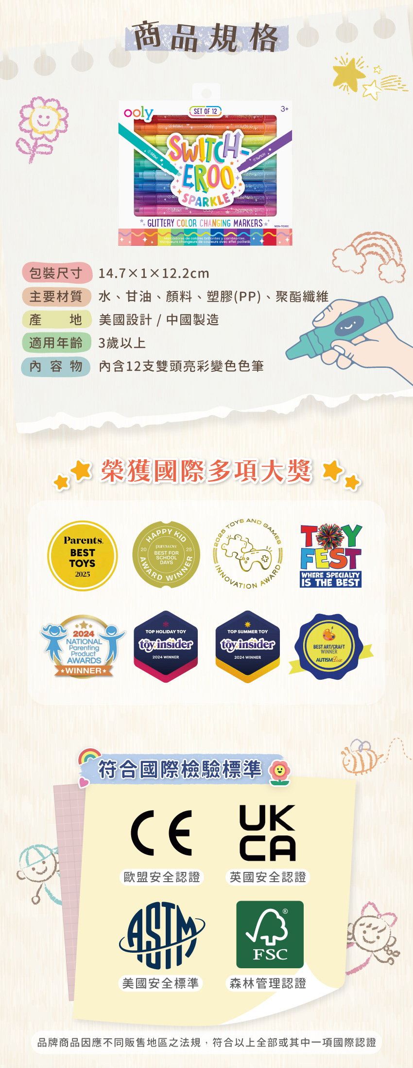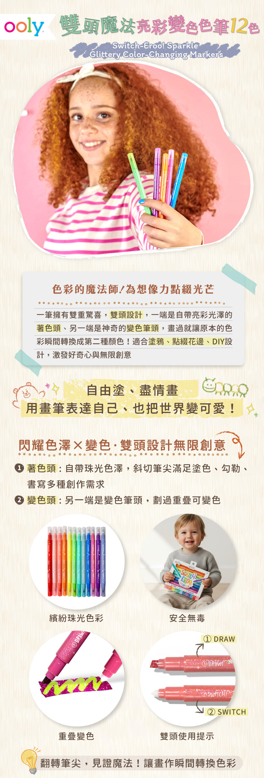 美國OOLY 雙頭魔法亮彩變色色筆(12色)