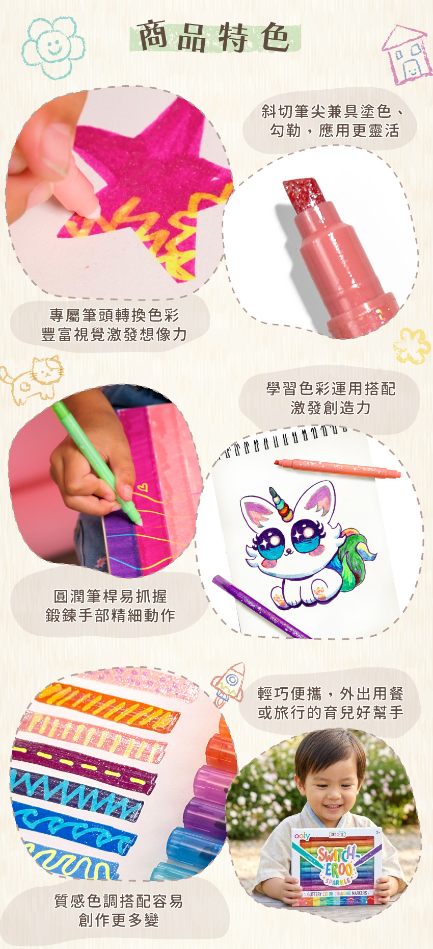 ● 專屬筆頭轉換色彩,豐富視覺激發想像力